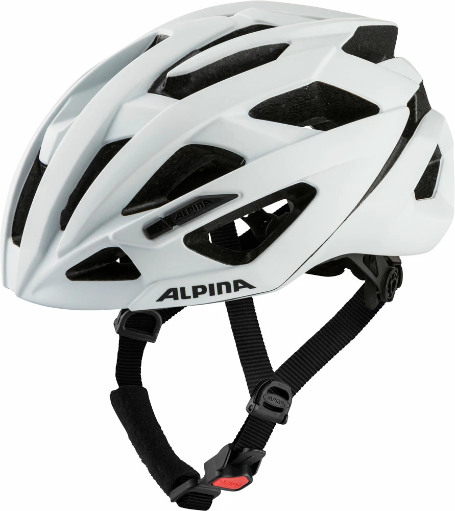 Éprouvée des centaines de milliers de fois et utilisée dans tous les casques de vélo Alpina : la célèbre boucle de ceinture avec bouton-poussoir rouge et détente automatique à plusieurs niveaux. L’Ergomatic peut être actionné d’une seule main – vous pouvez desserrer la sangle en montée, la resserrer en descente – et ne peut pas s’ouvrir en cas de chute.