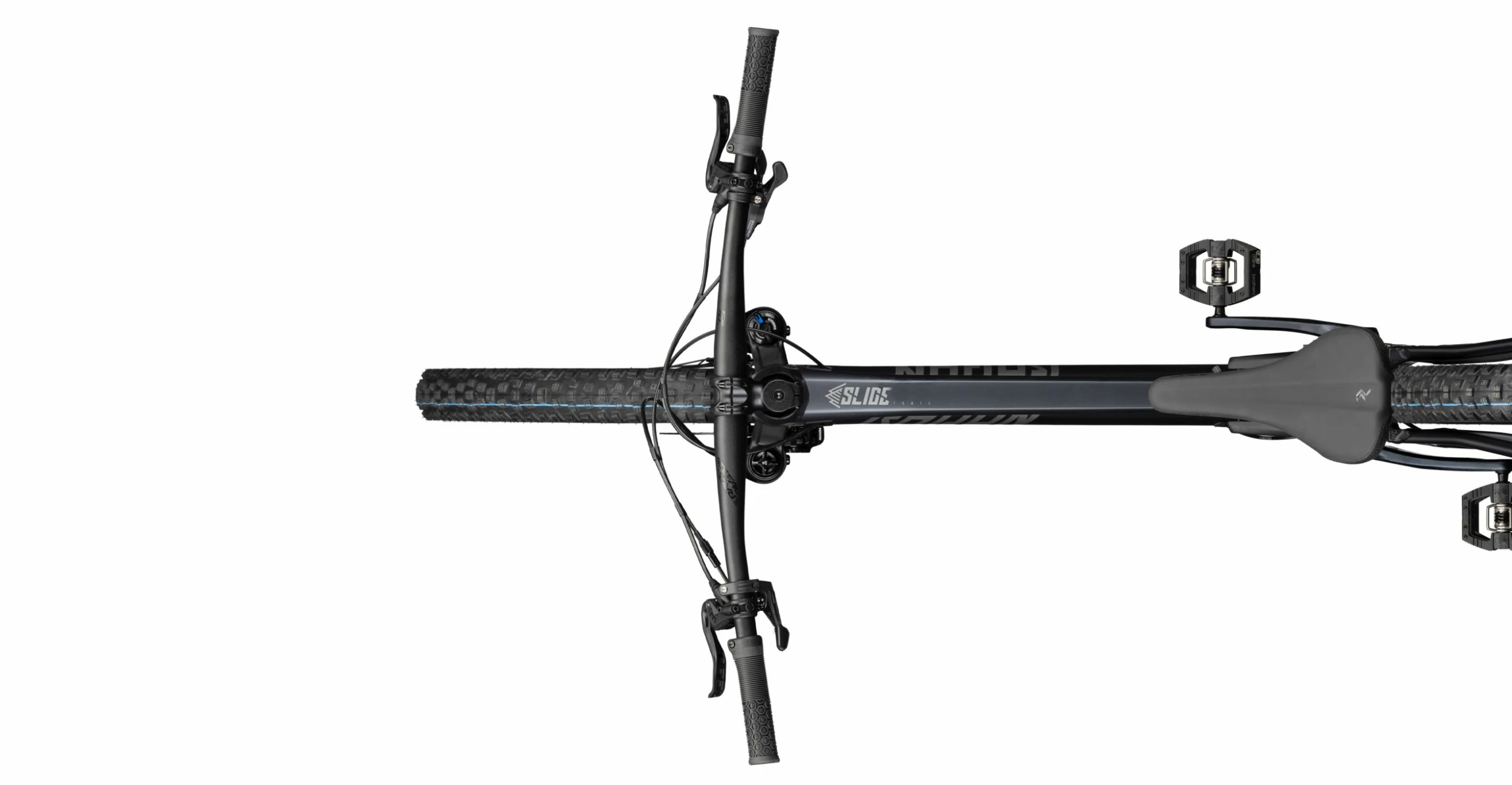 The RockShox Lyrik Select fork with 150mm travel responds very sensitively and still gives you optimum safety on steep passages and steps. With the 140mm travel of the RockShox Deluxe Select+ shock, every root can be smoothed out and the trail fun can begin! A clear line runs through the cockpit consisting of handlebar and stem from the Race Face Ride series. This allows you to build up great pressure on the front wheel and control is in your hands. The Magura MT Thirty Custom brake with its four-piston front decelerates quickly in tricky situations when needed. The 12-speed Shimano drivetrain gives you maximum speed. The bike is completed by the Nobby Nic all-round tyre with ADDIX Speedgrip rubber compound and Superground casing from Schwalbe. Paired with the solid SUNringlé Düroc 35 wheelset, you can tackle any obstacle with ease. Ready, Steady, Go – the SLIDE TRAIL AL 7.0!