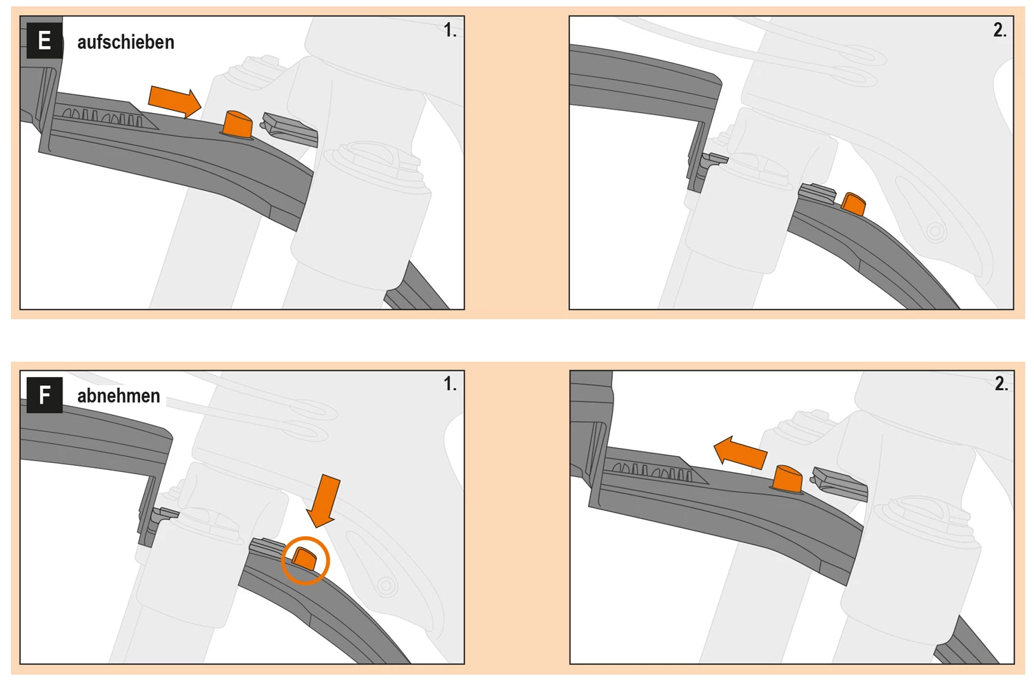 La fixation rapide est une caractéristique particulière : Après avoir vissé un adaptateur dans le tube de direction lors du montage initial, le garde-boue avant peut être verrouillé en place et détaché du vélo en appuyant sur un bouton. Le système de cônes amélioré 2.0 couvre un diamètre allant jusqu’à 39 mm (1,8 pouces). La livraison comprend deux adaptateurs de cônes de 19 à 39 mm. Des adaptateurs pour fourches rigides sont disponibles en option…